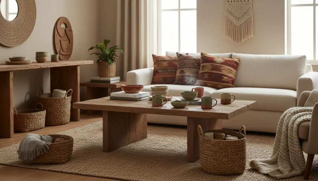 A curated selection of handcrafted pieces — from ceramics and woven baskets to kilim textiles.